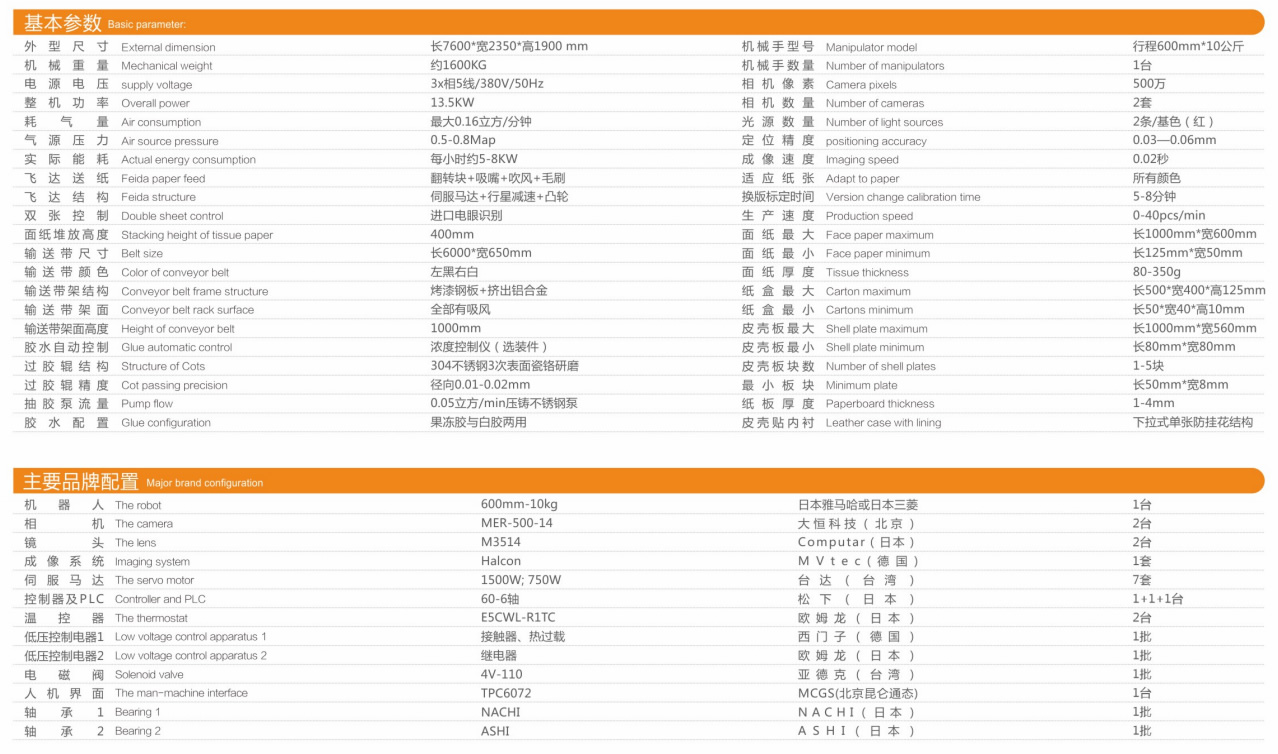 本機采用日本三菱 600 行程機械手,進口攝像頭,松下 pLc 等國際高端電器,定位尺寸大,精度高,運行穩(wěn)定.速度快,可操控性強,轉(zhuǎn)版調(diào)機五分鐘左右,適合各種紙盒、皮殼、內(nèi)神狗送紙、過膠、對位生產(chǎn),尤其是下拉式貼內(nèi)襯裝置完全解決了皮殼刮花的問題。該機全部由本公司自主研發(fā)、設計、生產(chǎn),其中伺服凸輪飛達部分、過膠部分、榴字控制部分已經(jīng)獲得多項國家專利。